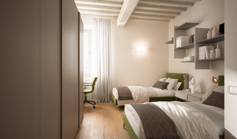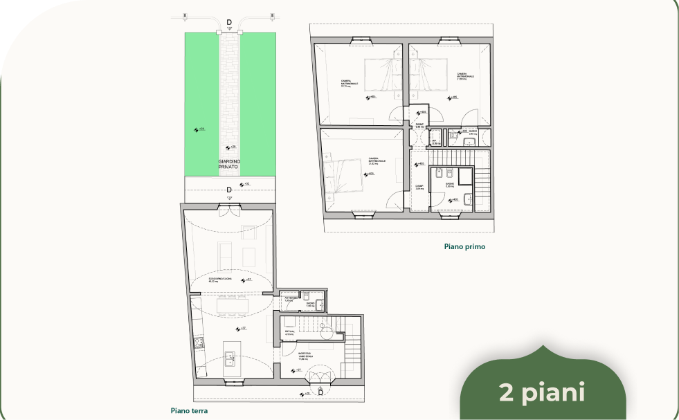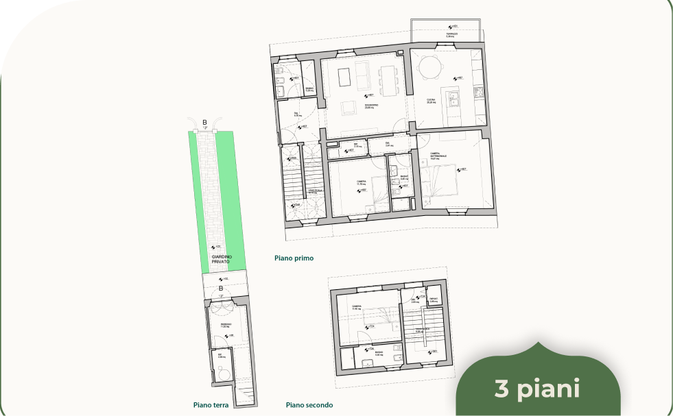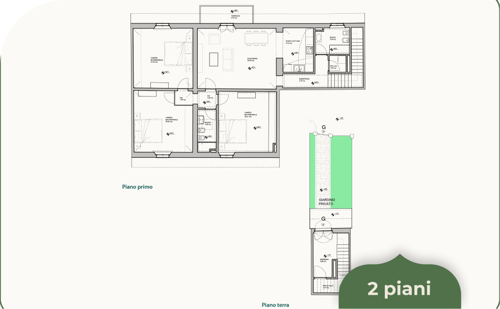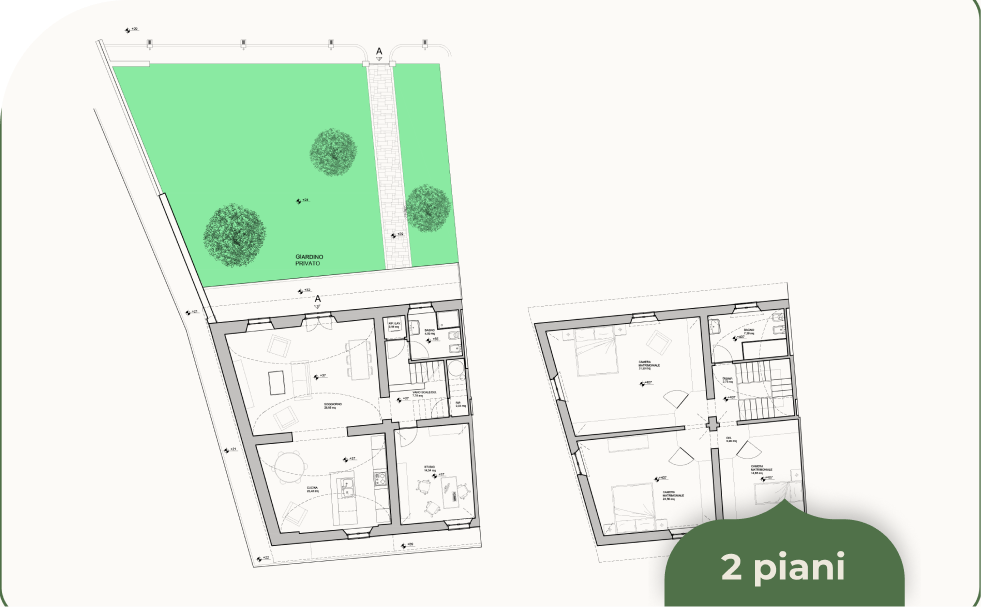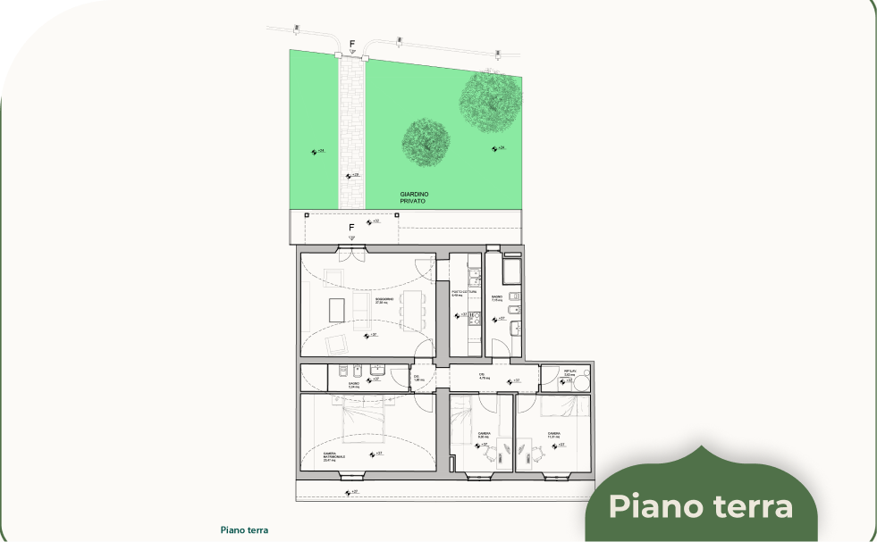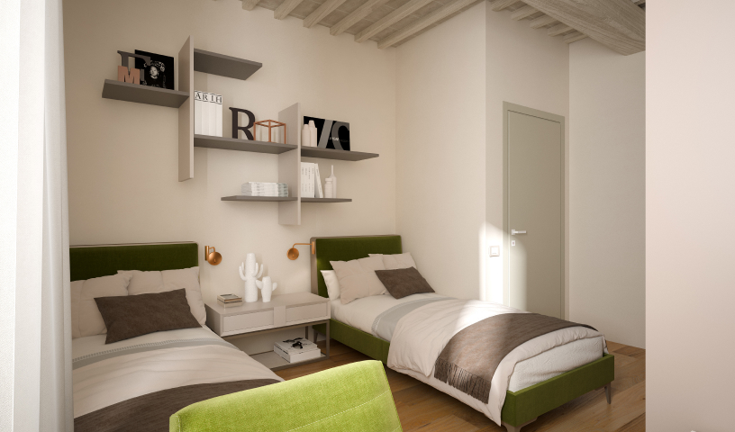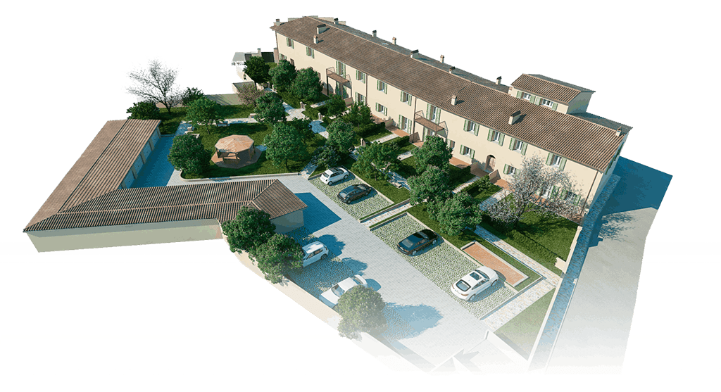 Oltre a un accesso privato a delimitare l’intero complesso, tutti gli appartamenti del Borgo Foriporta saranno provvisti di giardino privato e di due posti auto.